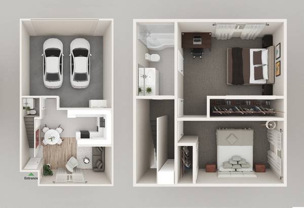 Our elegant apartments feature expansive high ceilings that enhance the sense of space, modern kitchens equipped for all your cooking needs, generous closet storage, and convenient two-car garages. A selection of floor plans is available to match your individual requirements.