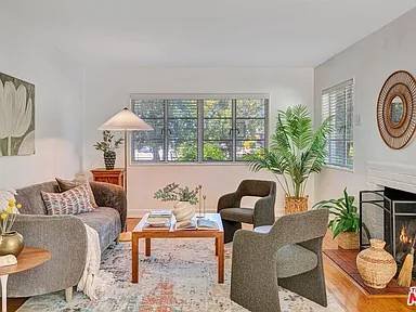 The residence boasts hardwood flooring, recently applied paint, and custom window treatments. It includes a private garage, shared laundry facilities, around-the-clock security, and a full calendar of community activities. This home seamlessly blends contemporary conveniences with classic mid-century appeal, and may qualify for property tax reductions under the Mills Act.