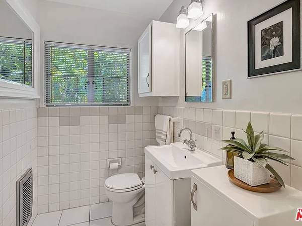 Discover a distinctive offering within the historic Village Green community. This 1942 National Historic Landmark, situated in Baldwin Vista, presents a 745-square-foot bungalow complete with a welcoming fireplace, a generous patio, and ample natural light that offers views of a 64-acre urban forest preserve.