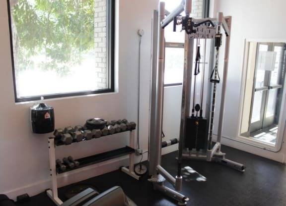 - Fitness center with mirrored walls