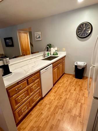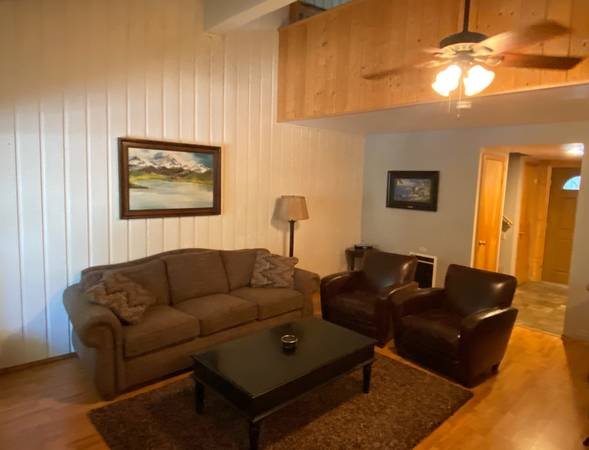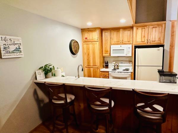 For your enjoyment, firewood is provided on the balcony for use with the fire pit from November through April, subject to availability. An equipment locker is situated just outside the entrance for storing ski gear or fishing equipment. Convenient parking for a maximum of two vehicles is available steps from the door.