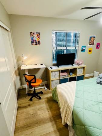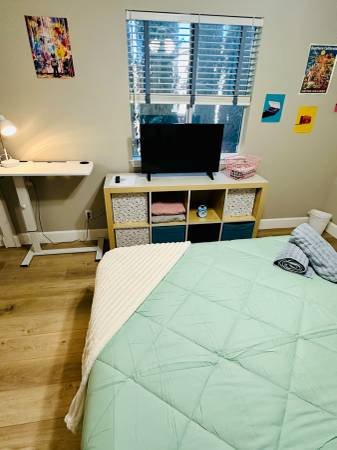 You will be sharing a spacious executive home with two or three professionals who are either students at local colleges or full-time employees. Guests have access to all common areas, including the community pool and jacuzzi, living room, downstairs back patio, and kitchen. Dishware and cookware are available for light meal preparation.