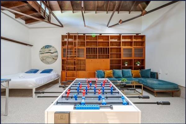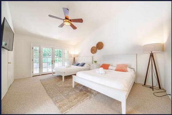 Located less than ten minutes from both Universal Studios and Hollywood, this property offers a heated pool and spa available for an additional fee. Guests can enjoy a game room equipped with ping pong and foosball tables. The home features five queen-sized memory foam beds and an outdoor barbecue area. A hike to the Hollywood Sign is nearby, and the sign itself is visible from the backyard. The trailhead for the Lake Hollywood hike is within walking distance.