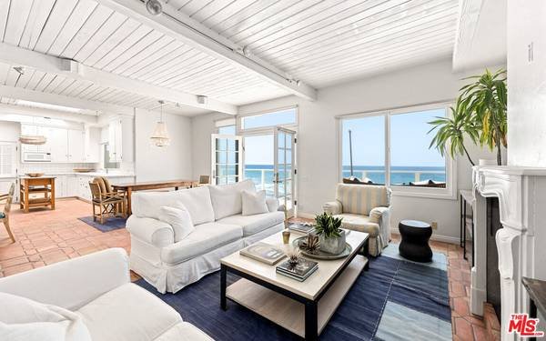 Here is an ideal coastal retreat situated on the sought-after Malibu Road. This home features skylights, expansive picture windows, a full-width deck, and direct access to the beach. From this vantage point, you can enjoy panoramic views stretching all the way to Catalina Island from sunrise to sunset. Experience a true Malibu indoor-outdoor lifestyle, perfect for escaping, relaxing, and entertaining in this charming single-story residence. A gated courtyard entry provides a preview of the ocean, and upon entering, you are greeted by sweeping vistas from the open-concept living, dining, and kitchen area, which opens directly onto the deck.
