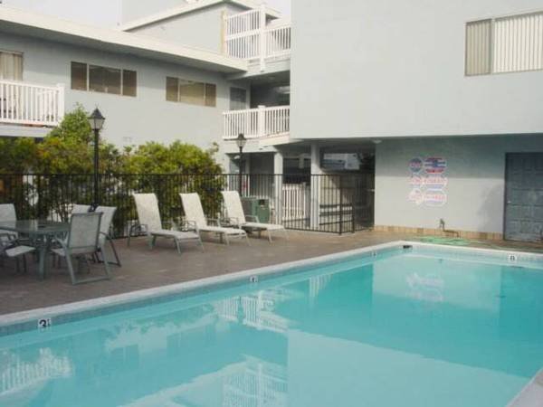 EXCEPTIONAL LOCATION! Within walking distance to the beach, coffee shops, and restaurants. This perfect beach condo is situated in an outstanding complex. The unit, located on the first floor with north and south exposure, features large bedrooms, a nicely sized living and dining area, and a balcony. Recent renovations include: one subterranean parking space for a single car; a frost-free refrigerator; a like-new, full-size beige hide-a-bed sofa; a new gas range and a new over-the-range microwave oven. Water and trash service are included in the rent.