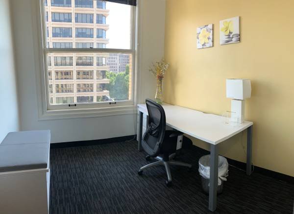 Introducing Office 620: a charming window office with views of Colorado Boulevard, designed to accommodate up to two people. This space is situated on the sixth floor of the historic Chamber of Commerce building in Old Town Pasadena. It offers business professionals an ideal combination of classic character and contemporary facilities.