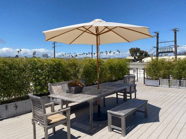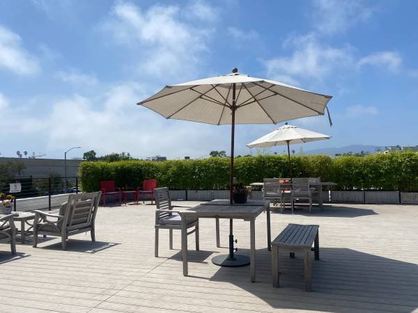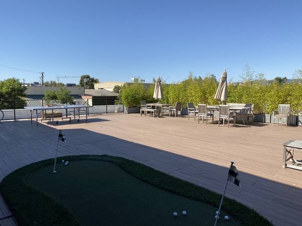 Additional benefits include complimentary high-speed fiber wifi and use of a private conference room, which can be reserved via an online scheduling calendar. All utilities are incorporated into the monthly rent. The shared kitchen is fully supplied with organic coffee, sparkling water, sodas, and beer. A shared, sunny rooftop patio offers wifi, picnic tables, ping pong, and a putting green.