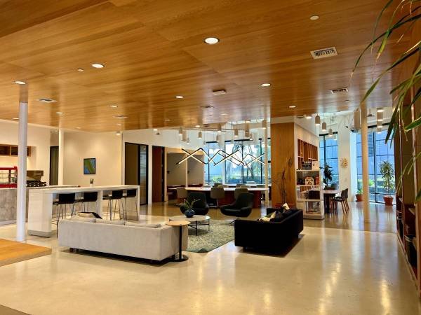 - Private offices built with glass walls to maximize natural light.