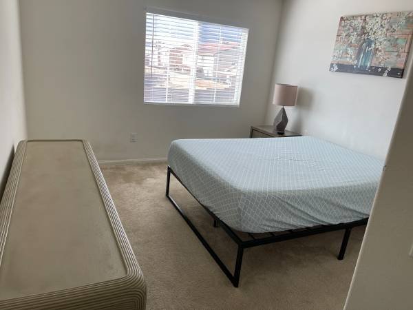 A furnished bedroom is available on the upper level, sharing a bathroom with only one other individual. This rental is strictly for a single person.