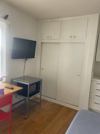 Modern furnished Studio in West Adams. Excellent central location between Downtown/Koreatown/Culver City. Just west of USC. Queen size bed, kitchenette with toaster oven, microwave, portable electric cook top, coffee machine, small refrigerator etc. Modern bathroom with shower. One guest only. $1350 per month including wifi, utilities and TV included. Free street parking in the neighborhood. No smoking. No pets. Laundry in building/on site that works with quarters. Note: This is a private residence and owners live on the property.