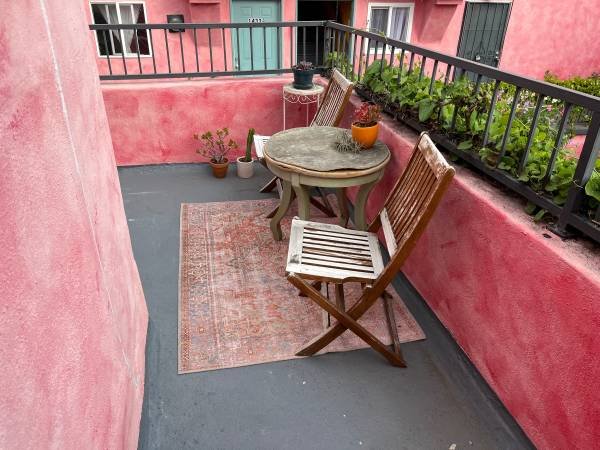 A spacious one-bedroom apartment located in the core of Echo Park. This second-floor unit is situated away from street noise and features a private patio. It resides within a distinctive, vibrantly painted courtyard filled with lush plants and abundant character.
