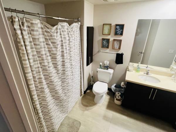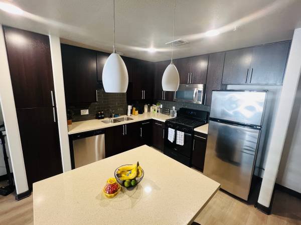 This bright and tidy furnished sublet is situated in a prime central location on Santa Monica Boulevard. The unit features a fully equipped kitchen, a generous living area complete with a standing desk setup, in-apartment laundry facilities, and a queen-sized bed. All necessary linens and towels are supplied for your convenience.