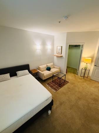 A fully furnished, spacious private bedroom featuring a walk-in closet is now available for lease. This room includes a private, keyed entrance and offers a studio-like feel, with access to a communal kitchen. It is move-in ready and equipped with all essential amenities. The bathroom is shared with one other individual.