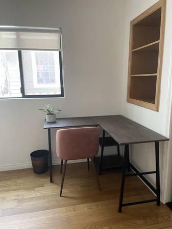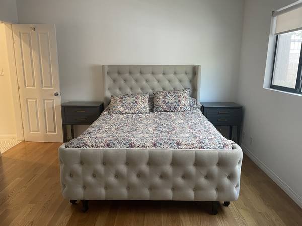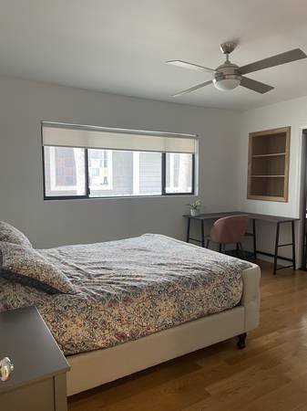 Seeking a tidy and reliable person to lease the master bedroom in a beautifully renovated two-bedroom, two-bathroom apartment. The unit features in-building laundry facilities. It is newly updated and attractively furnished, including a comfortable queen-sized bed, nightstands, and a desk. The private bathroom offers excellent storage and a double-sink vanity. The bedroom itself is very spacious with ample storage, including custom closet organizers. If you desire a beautiful, roomy, serene, and well-maintained home, this is the perfect match. The quiet neighborhood is ideal for those working or studying remotely and is also a wonderful area to discover. The location is superb, with convenient access to everything. The apartment becomes available on January 1st. The first month\'s rent and a one-month security deposit are required.