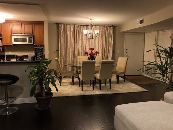 This is a contemporary tastefully decorated condo with stainless steel appliances, granite countertop, washer/dryer combo in unit, fireplace, recessed lighting, hickory hardwood floor in living room, modern bathrooms with modern fixtures and great floor plan. You will get your own private room and attached bathroom, and share kitchen and living room with me. Tandem parking available in a garage with attached EV charger. The building has a small gym for the residents use.