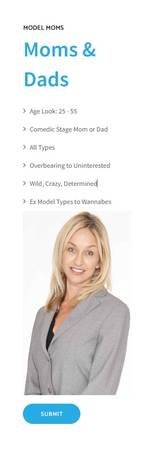 Model Moms is a mockumentary series centered on a photography studio and modeling agency, highlighting the eccentric stage parents the staff must collaborate with. To apply, please submit a brief description of yourself, your location, and recent photographs to: casting@pacific.productions